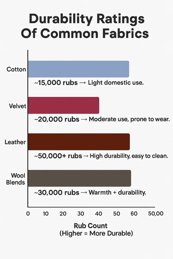 Inquire about the rub tests for the upholstery fabrics. There are two rub tests, Martindale and Wyzenbeek. A heavy-duty sofa upholstery fabric must have a rating above 32,000 rubs. Anything lower than 21,000 rubs is risky.